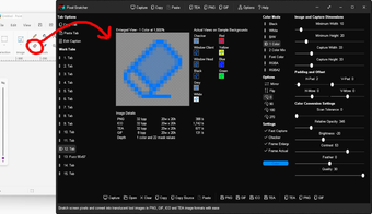 Snatch pixels from your screen and convert into translucent tool images in PNG, GIF, ICO and TEA image formats with ease. Create modern monochromatic tool images in seconds for your app, web app, or Gossamer app. Click capture, hover mouse cursor over screen area to acquire image, adjust color conversion settings if required, and copy/save.